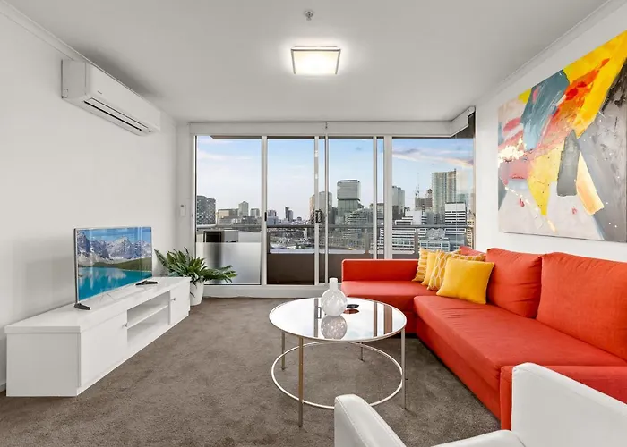 Located a 25-minute walk from Coop's Shot Tower, Exclusive Stays - Rivergarden Melbourne apartment overlooks the city. Offering access to a year-round outdoor swimming pool, this apartment is right off South Melbourne Market.